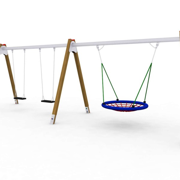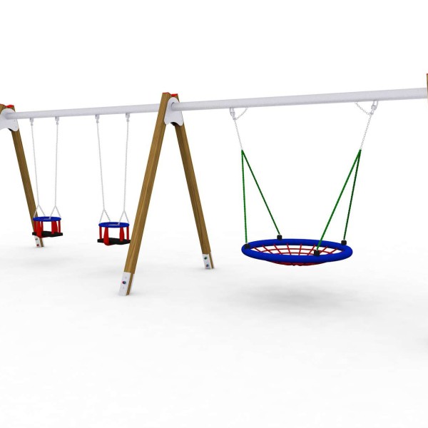 Prodotti | Giochi per parchi | Altalene, nido e teleferiche | ALTALENA CON CESTONE E 2 SEDUTE