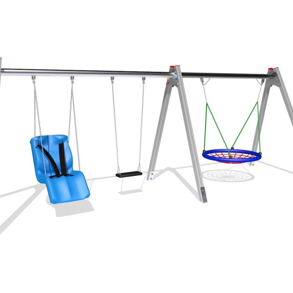 Prodotti | Giochi per parchi | Altalene, nido e teleferiche | ALTALENA CON CESTONE E 2 SEDUTE