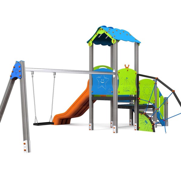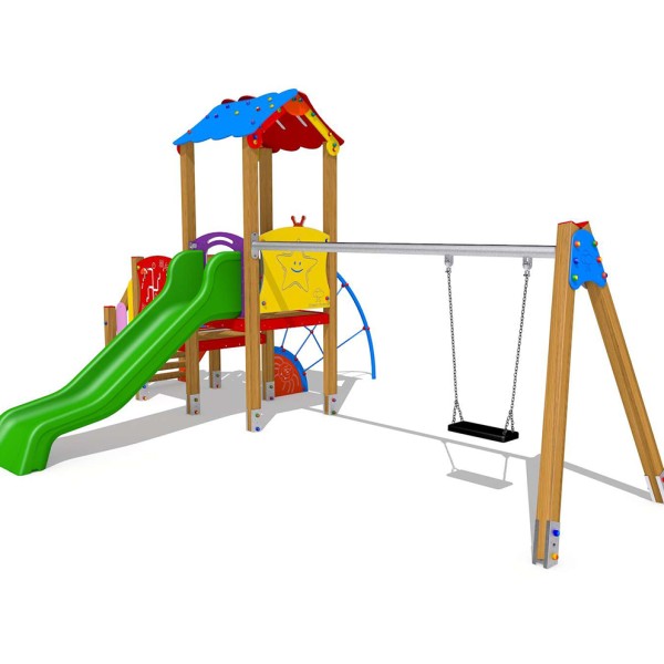 Prodotti | Giochi per parchi | Torrette | MARMOTTA CON ALTALENA BABY E PALESTRA SPIDER