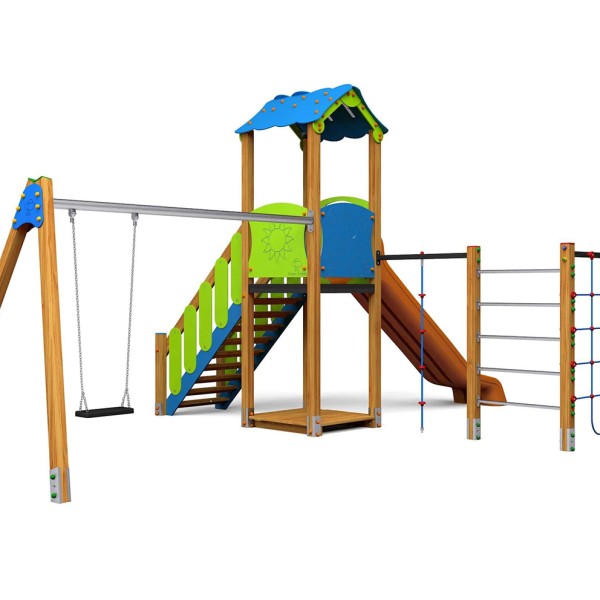 Prodotti | Giochi per parchi | Torrette | SCOIATTOLO CON ALTALENA E PALESTRA