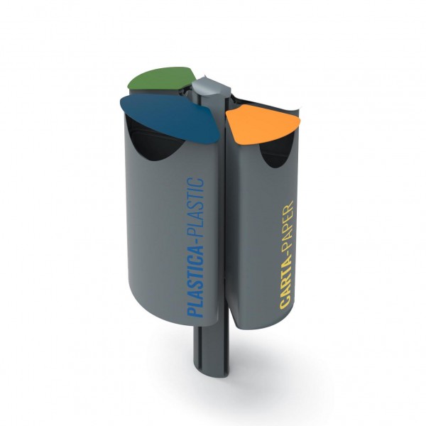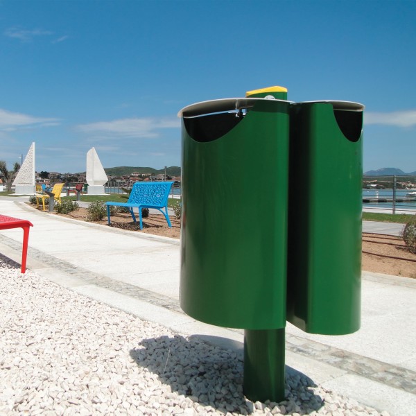 Cestino portarifiuti modulare componibile in acciaio verniciato a polveri, ellittico, con fermasacco.