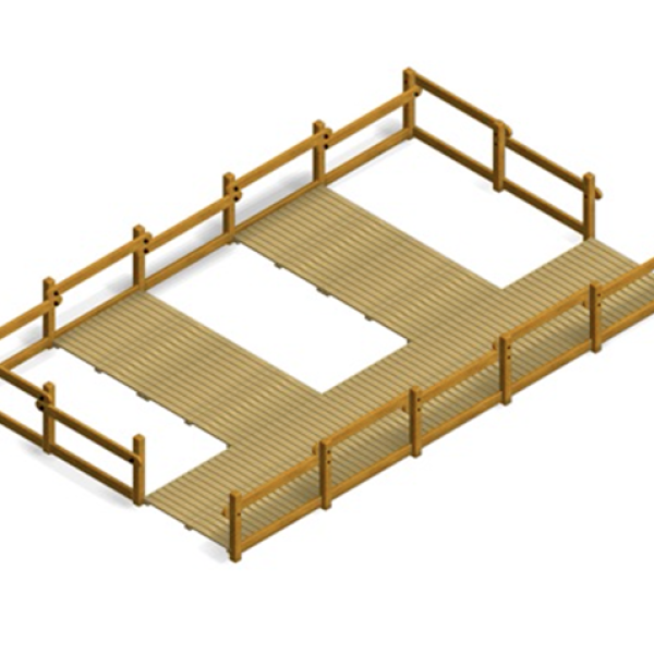 Costruito interamente in legno di pino svedese massello, impregnato a pressione con sali di rame, e ulteriormente trattato con vernici pigmentate a base acrilica, al fine di proteggere il legno anche dalle degradazioni chimico-fisiche esercitate dai raggi ultravioletti (azione fotolitica sulla lignina, causa principale dell'ingrigimento del legno esposto alle intemperie).