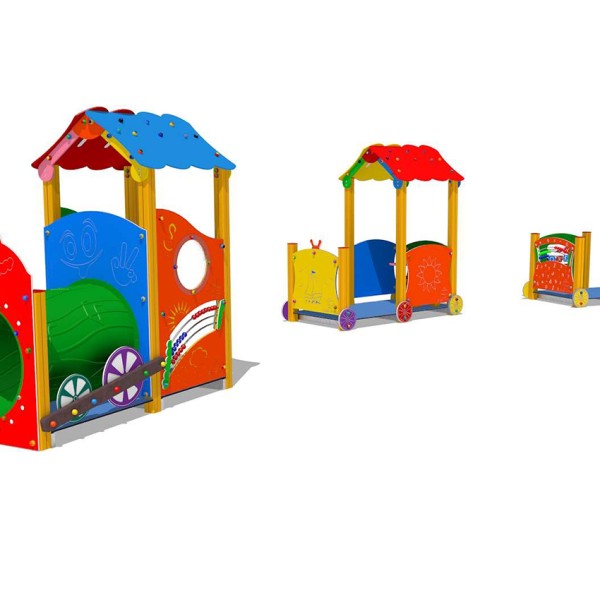 Questo tipo di struttura non è altro che la personalizzazione di un’attrezzatura, attraverso pannelli personalizzabili. Una semplice torretta può trasformarsi in un suggestivo castello, i tunnel diventano i vagoni di un treno, abbiamo navi pirata e serpenti, tutto per stimolare la fantasia e il gioco dei bambini.